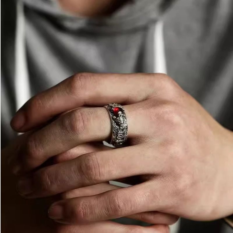 招财转运貔貅指环复古做旧风格小众时尚食指霸气可调节戒指