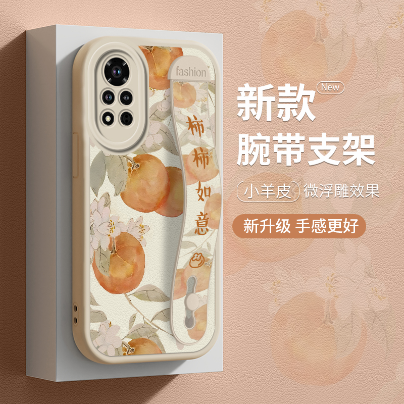 柿柿如意适用荣耀v40手机壳华为v30小羊皮v40轻奢版全包v30pro防摔v20新款v10女款曲屏腕带支架honor保护软套