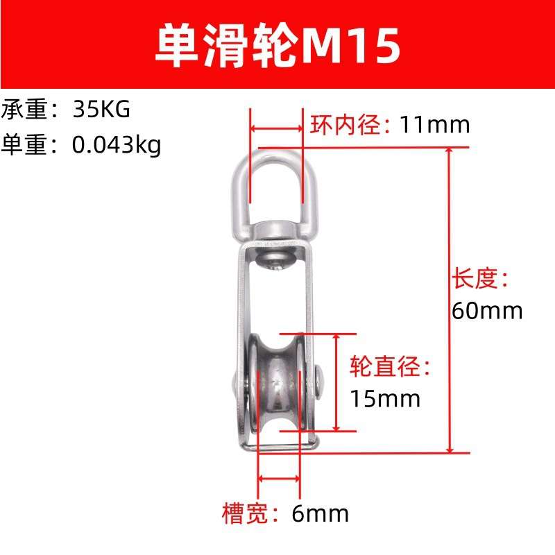 304不锈钢定滑轮船用海洋捕捞健身行车单双起重钢丝绳小电线吊轮