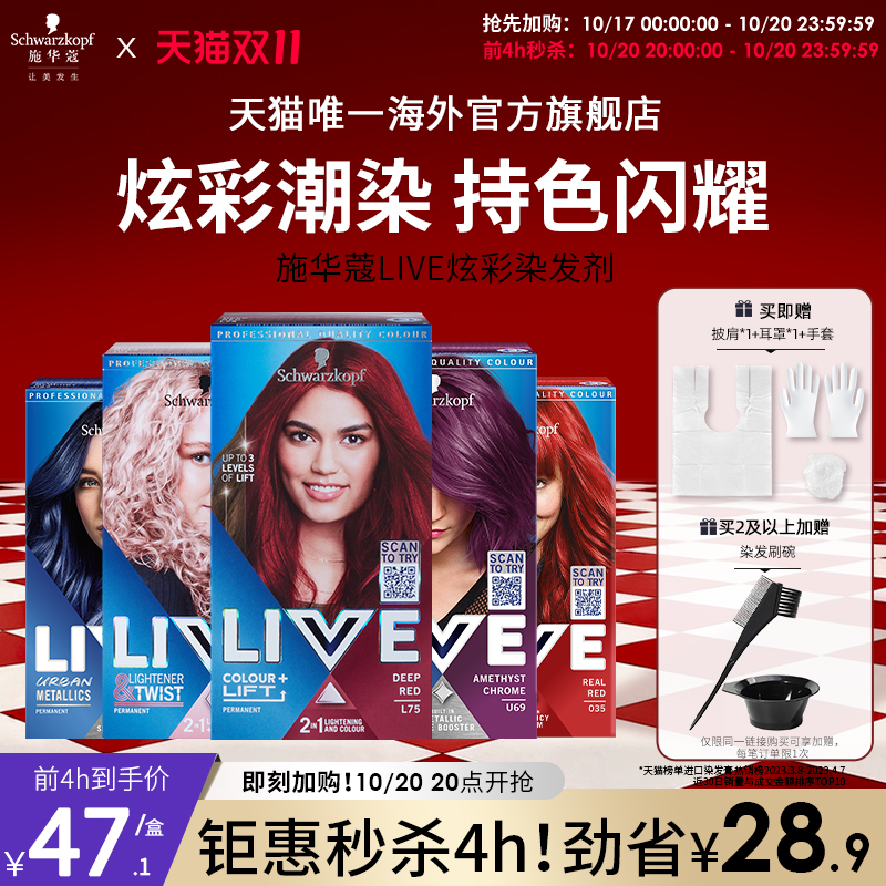 施华蔻LIVE染发剂染发膏L75女葡萄紫蓝黑雾霾灰红101粉橘色在家染