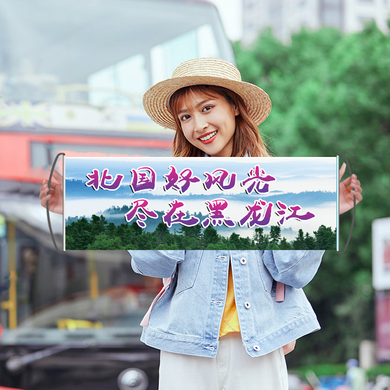 山东河南辽宁黑龙江河北内蒙古各地区手幅文旅同款布料款旅游手拉横幅大旗子宣传定制登爬山拍照打卡旗帜条幅
