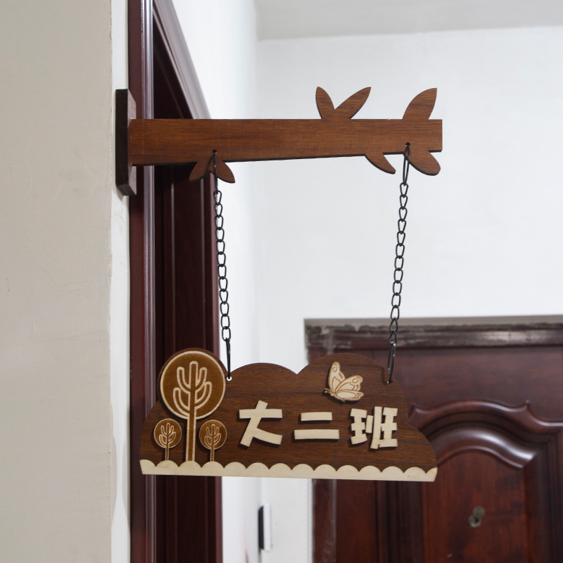 幼儿园卡通木质门牌音乐教室标识欧式铁艺班牌定制班级牌子实木提示牌教室牌工作室个性创意挂牌木架班牌定制