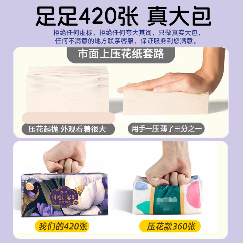 柔恣420张纸巾加厚大包抽纸家用餐巾纸大尺寸卫生纸面巾纸香味