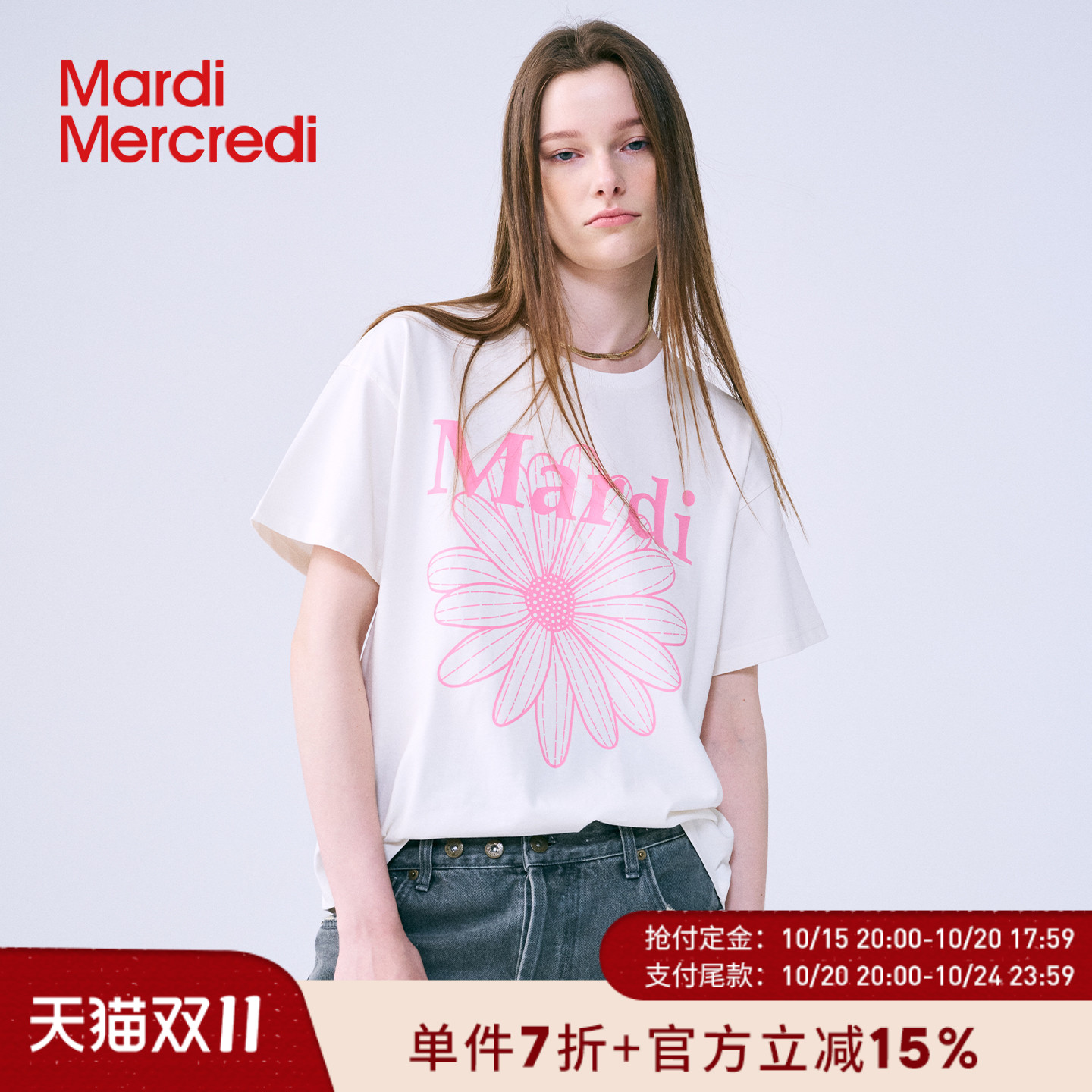 MardiMercredi小雏菊百合三花短袖t恤宽松上衣女夏季新款多巴胺