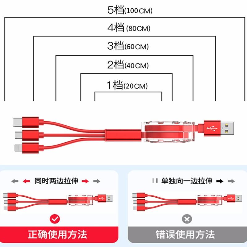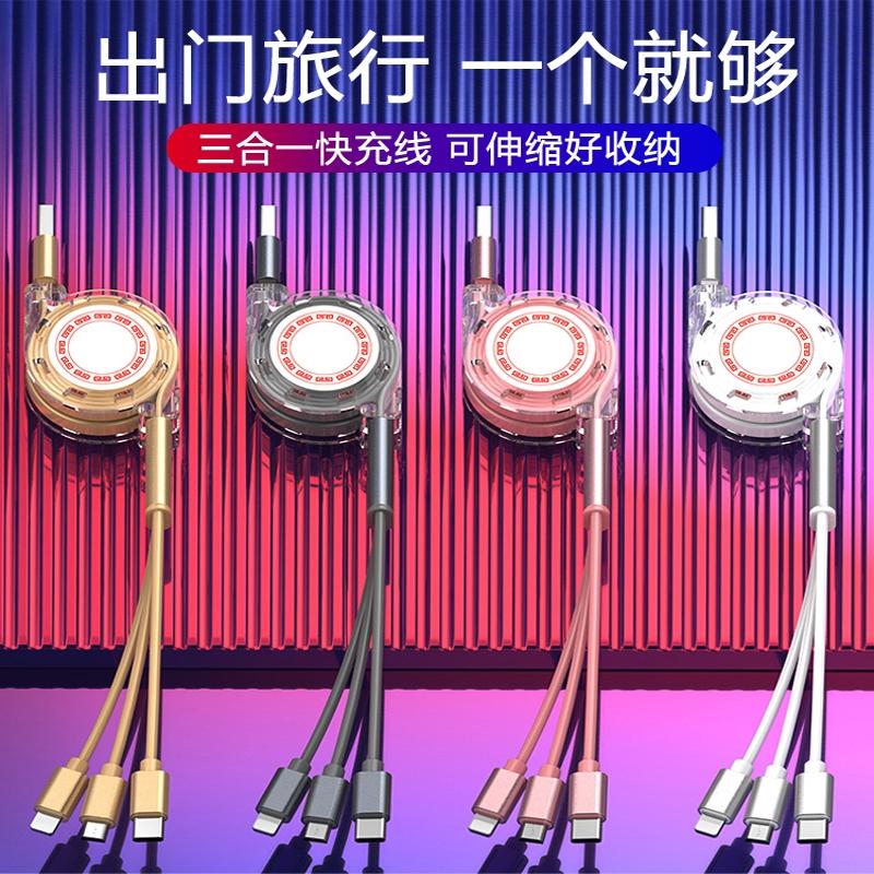 伸缩三合一一拖三充电线手机快充typec适用于苹果数据线安卓定制logo多功能多用收缩多口通用冲电车载usb车载