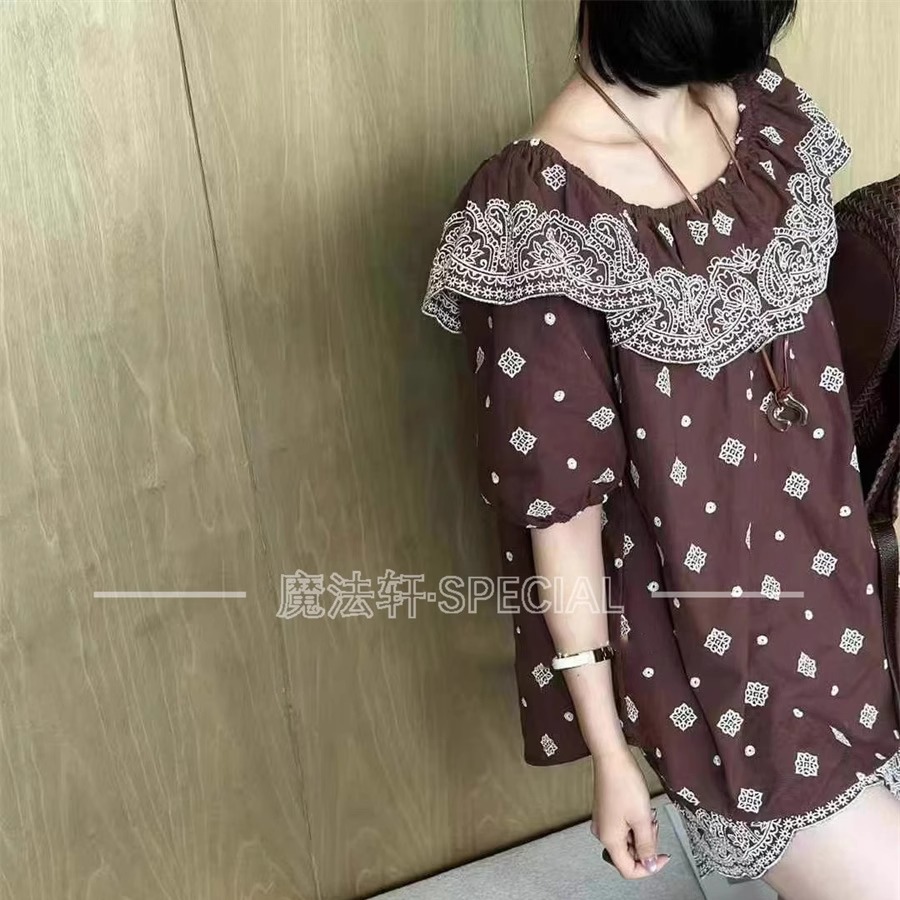 Fabrique蓝月光宫廷谧境法式纯棉刺绣泡泡袖衬衫上衣短裙套装女装