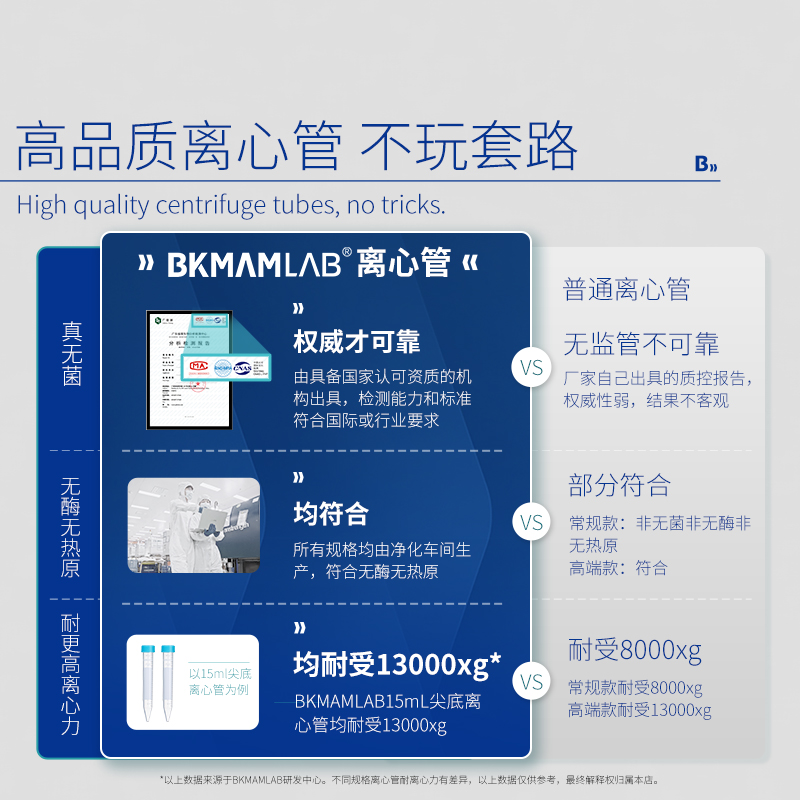 比克曼生物无菌塑料离心管实验室eo灭菌无酶样品管避光带书写区螺旋盖样品EP管微量平尖圆底100毫升15ml50ml