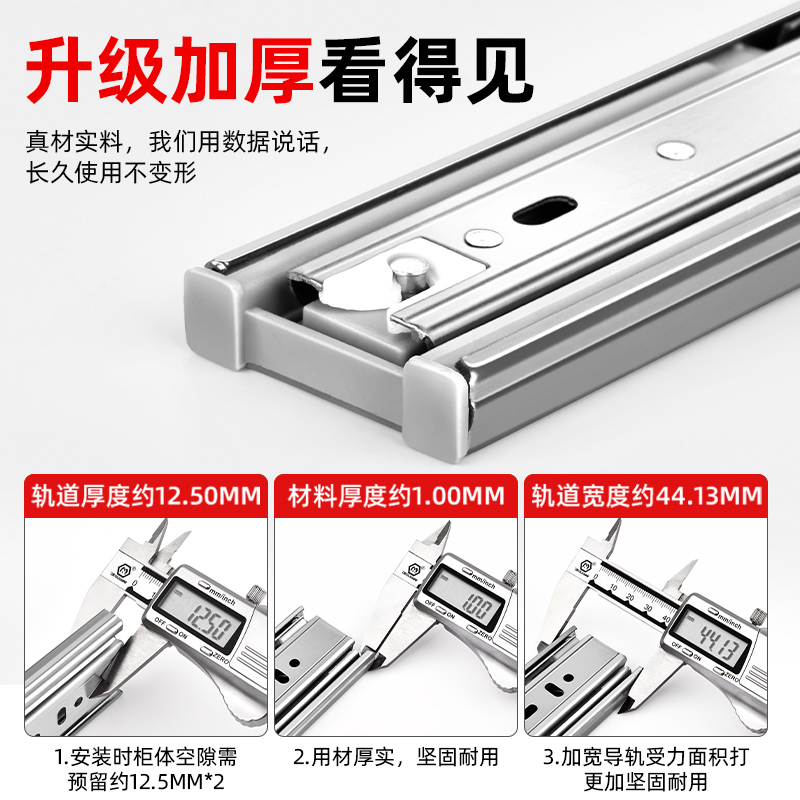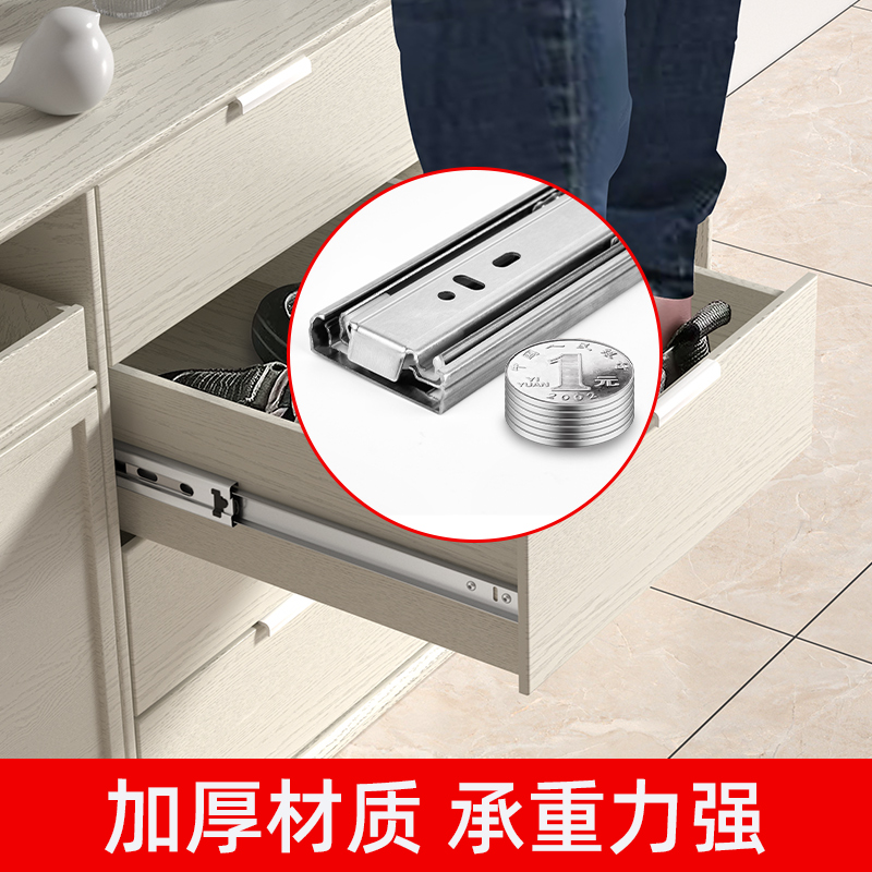 不锈钢抽屉滑道轨道滑轨三节轨缓冲阻尼导轨衣柜橱柜抽拉承重推拉