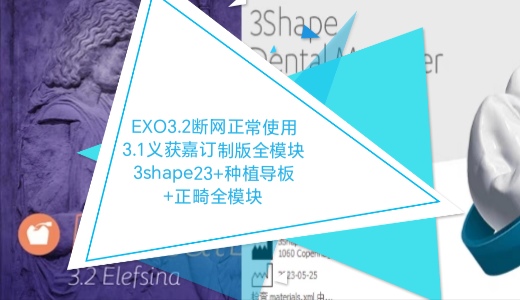 exo3.2+ 3shape23修复+种植导板+正畸CAD设计软件包邮包安装