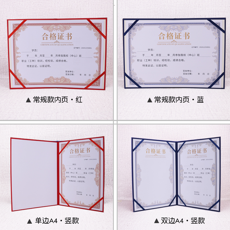 合格证书上岗前培训课程产品进修结项目岗位验收检验外壳封面定制订做烫金珠光会员证书授权签约本打印包邮