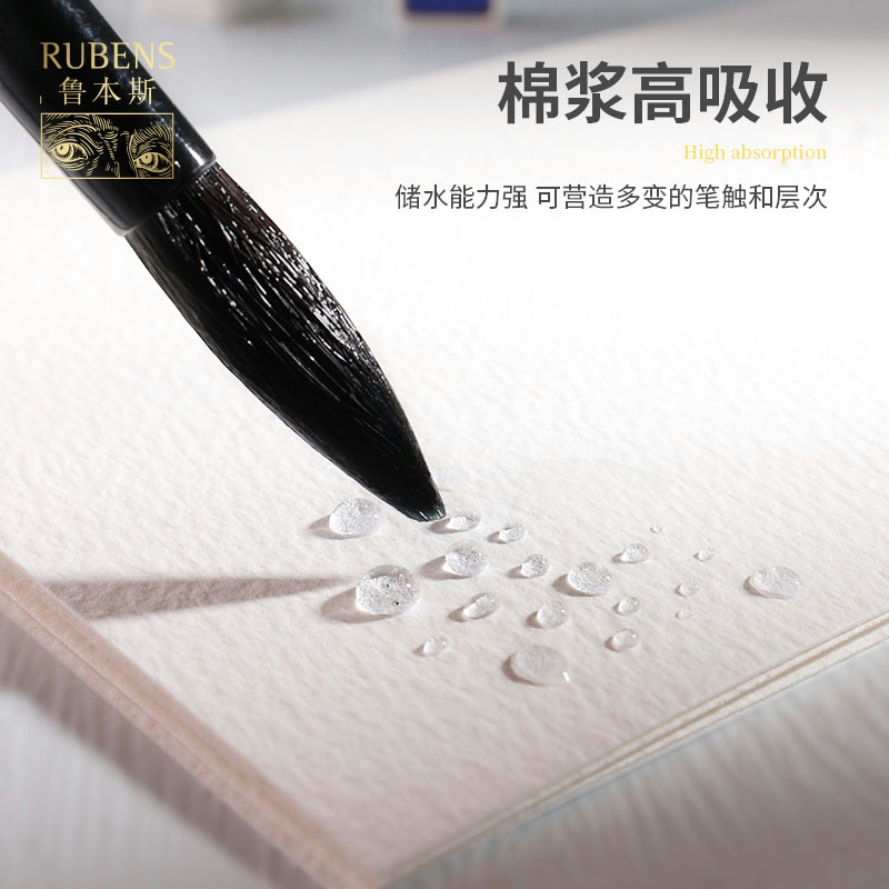 鲁本斯高吸收水彩纸棉浆300g加厚细纹8k4k32k16开水彩本分装中粗油画棒专用美术画画空白纸水粉颜料纸小卡片