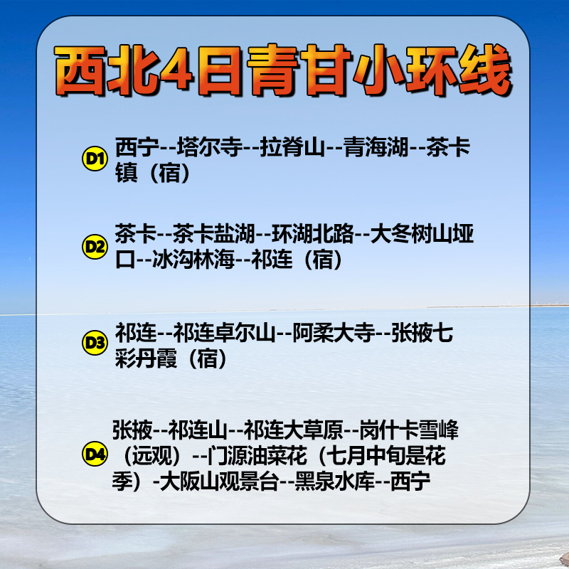 【西北青甘小环线】青海旅游纯玩4天3晚青海湖茶卡祁连张掖跟团游