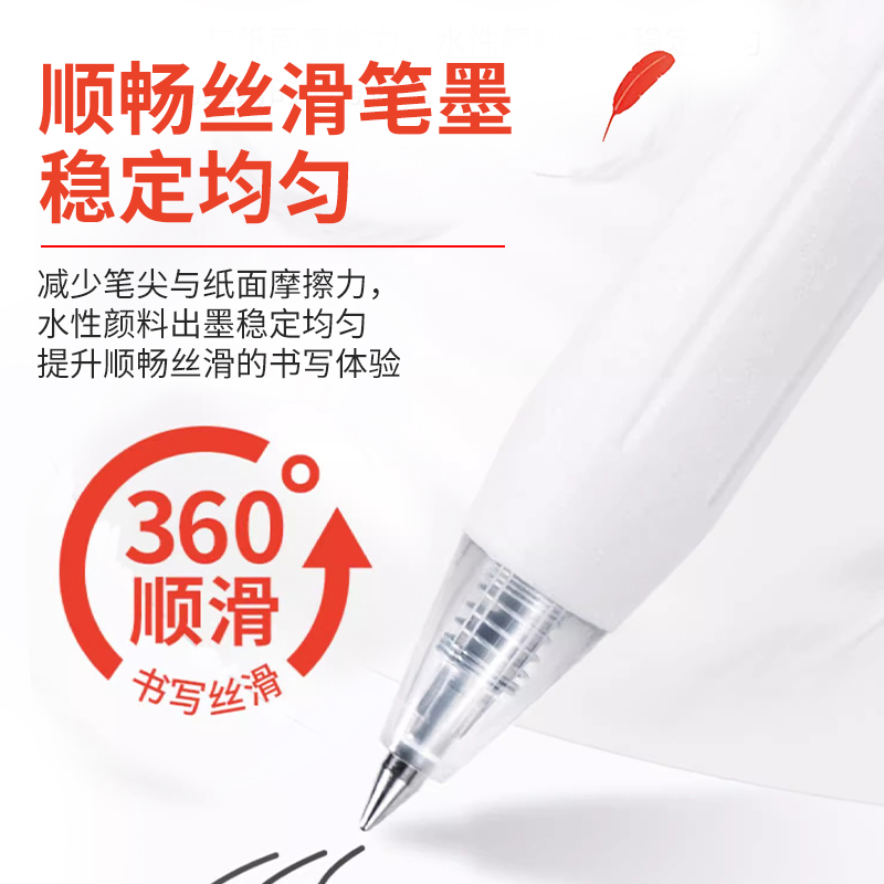 三年二班×点石红笔速干学生用红色中性笔老师专用粗头批改作业高颜值柔绘笔直液式刷题笔圆珠笔勃艮第红水笔