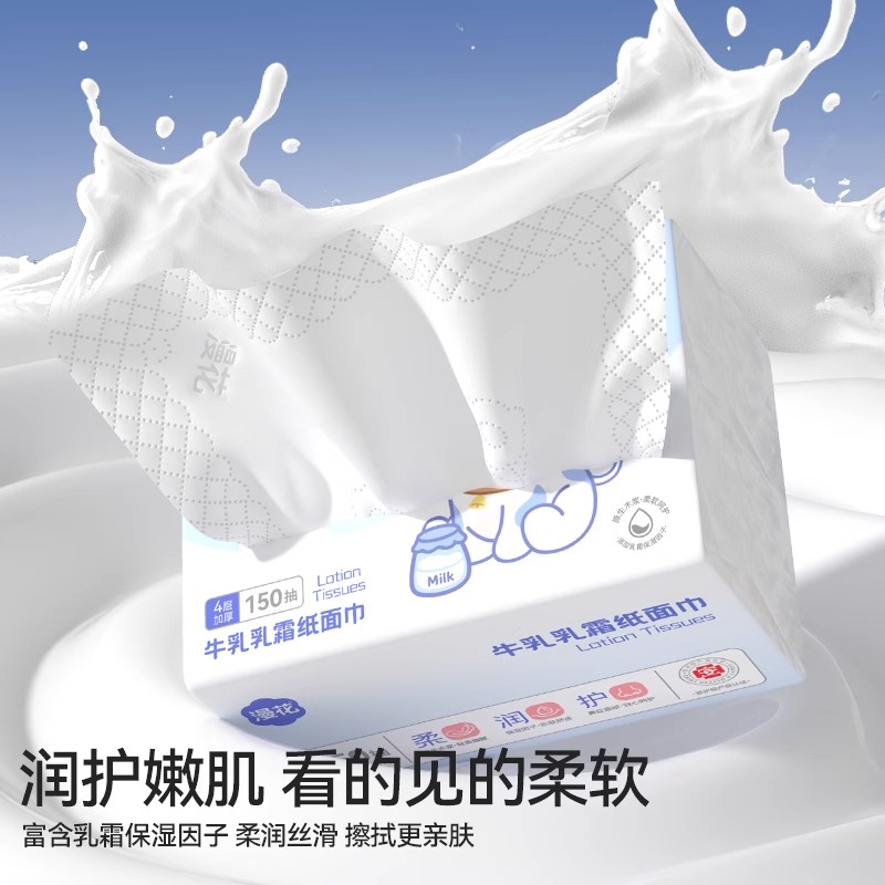 漫花婴儿保湿乳霜纸大包150抽新生儿云柔巾鼻敏感冒娇嫩肌抽纸巾