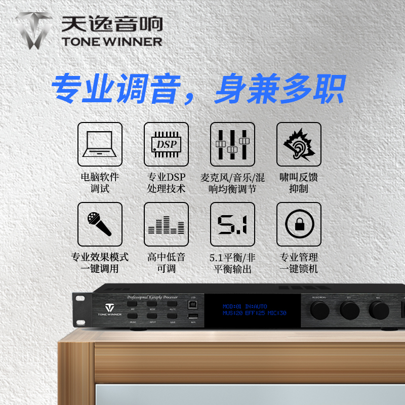 Winner/天逸AD-208PRO混响升降调DSP专业卡拉OK防啸叫前级效果器