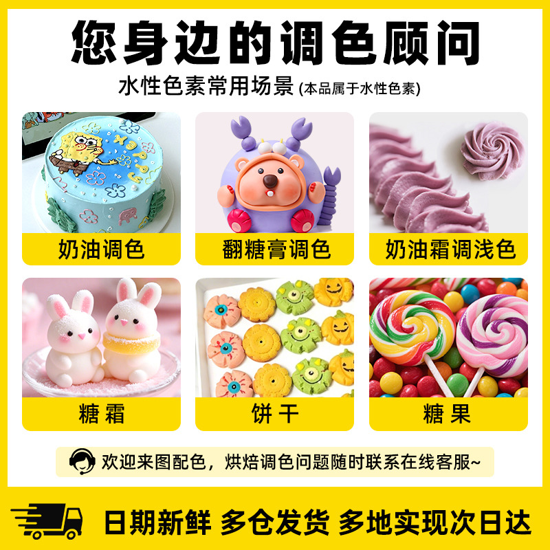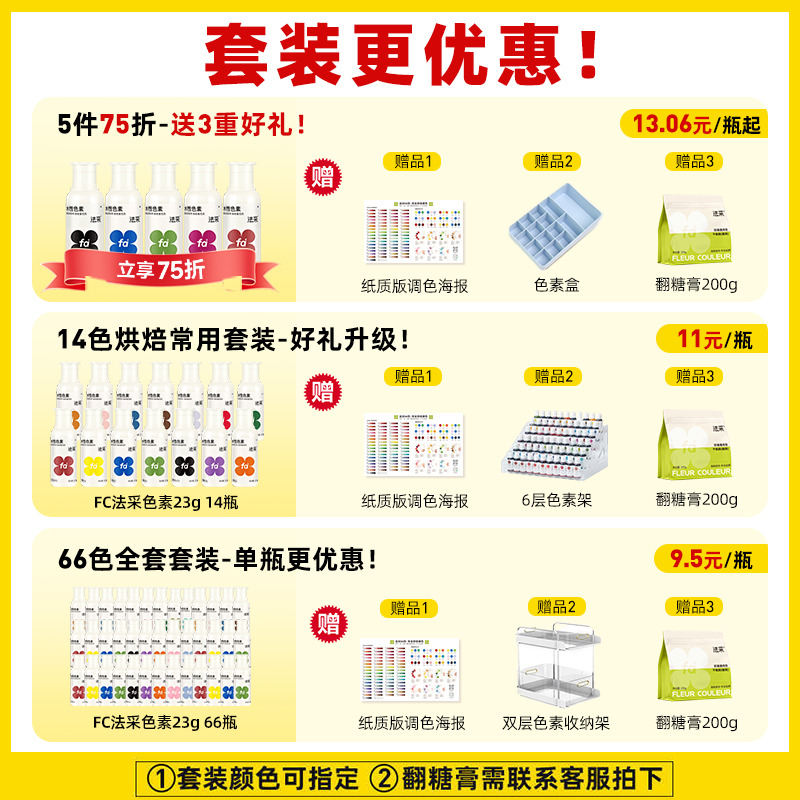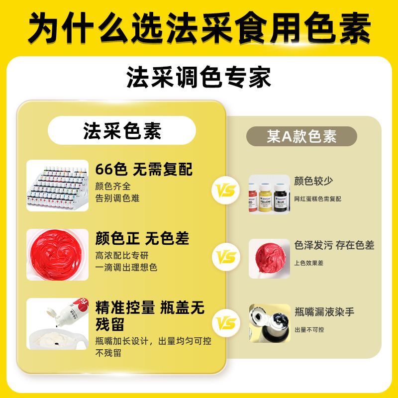 fc法采可食用色素烘焙食品级奶油蛋糕色素调色剂大红色白金黑色ac