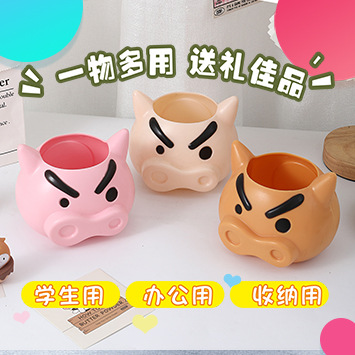 搞怪笔筒大容量办公室桌面收纳盒化妆刷学生女孩儿童男孩塑料摆件