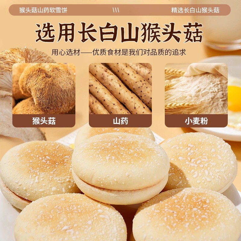 猴头菇山药软雪饼中老年人适合吃的健康零食营养胃食品无代糖早餐