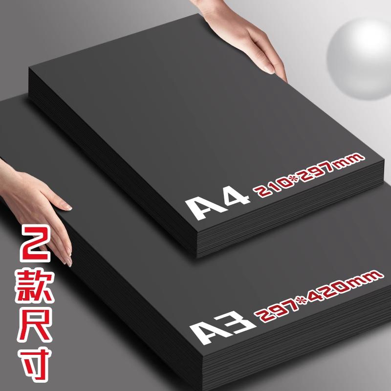得力黑色白色硬卡纸a4卡纸a3大张专用黑白手工制作材料绘画美术画画加厚幼儿园彩色儿童彩纸折纸小学生剪纸