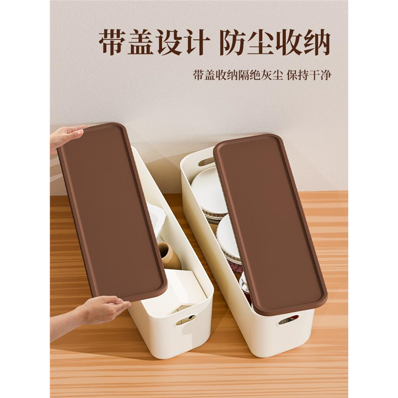 桌面收纳盒窄长型家用带盖零食杂物整理盒长方形夹缝收纳箱储物盒