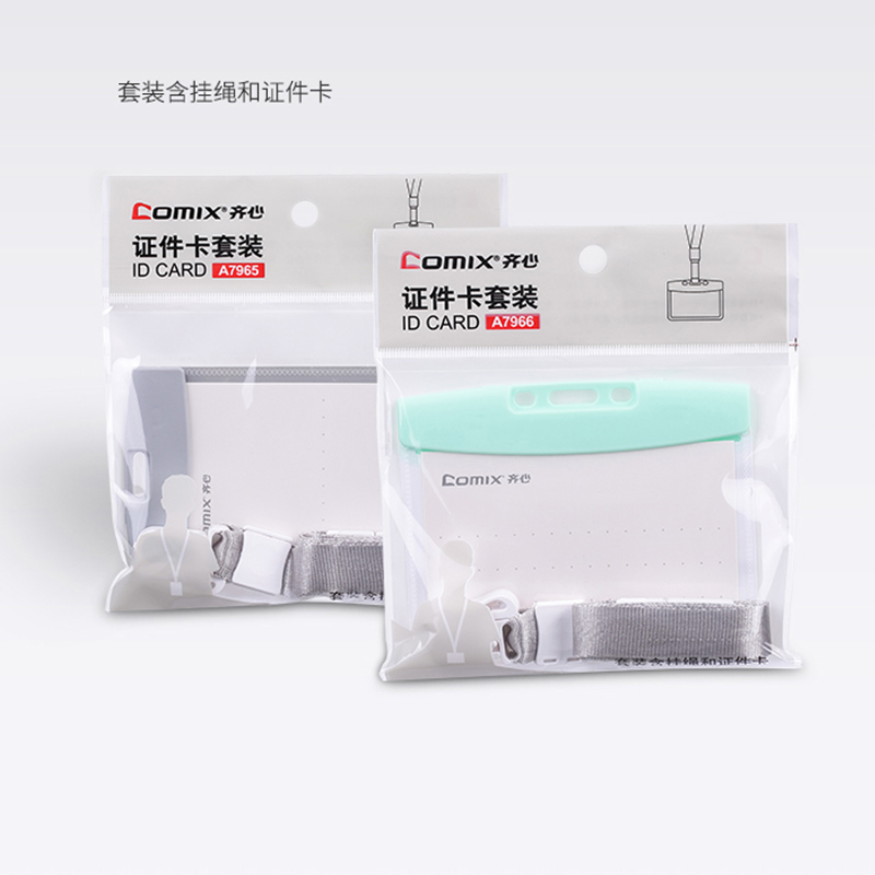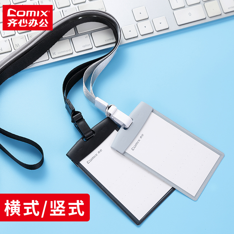齐心办公证件卡套横式竖式员工工作牌胸牌证件套工作证挂套门禁卡套公交卡保护套学生校园卡套挂绳5只装包邮