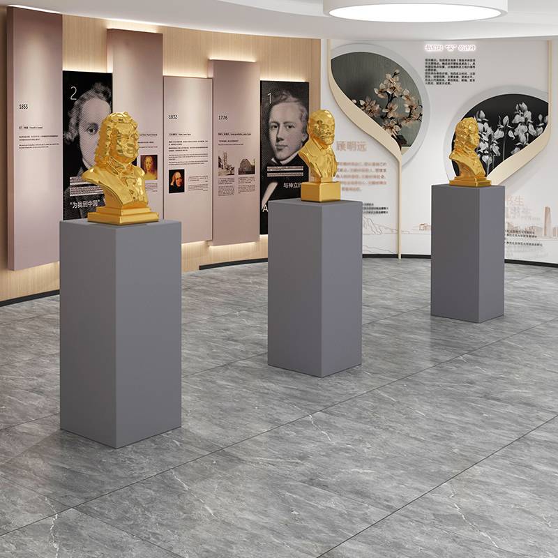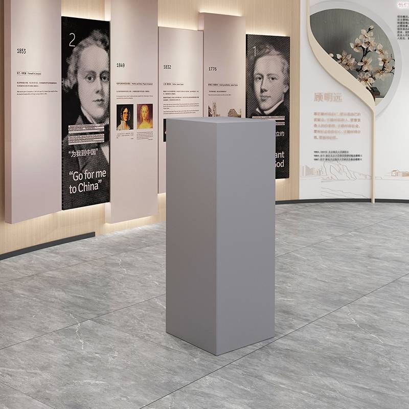 ?模特展示台橱窗长方体木制烤漆商业陈列高低立柱灰色地台底座展