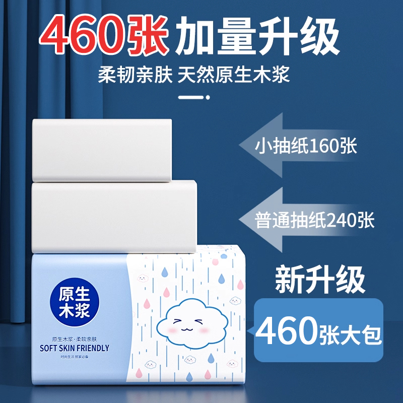 【加量加厚】460张大包原木抽家用实惠装卫生抽整箱批婴儿擦手