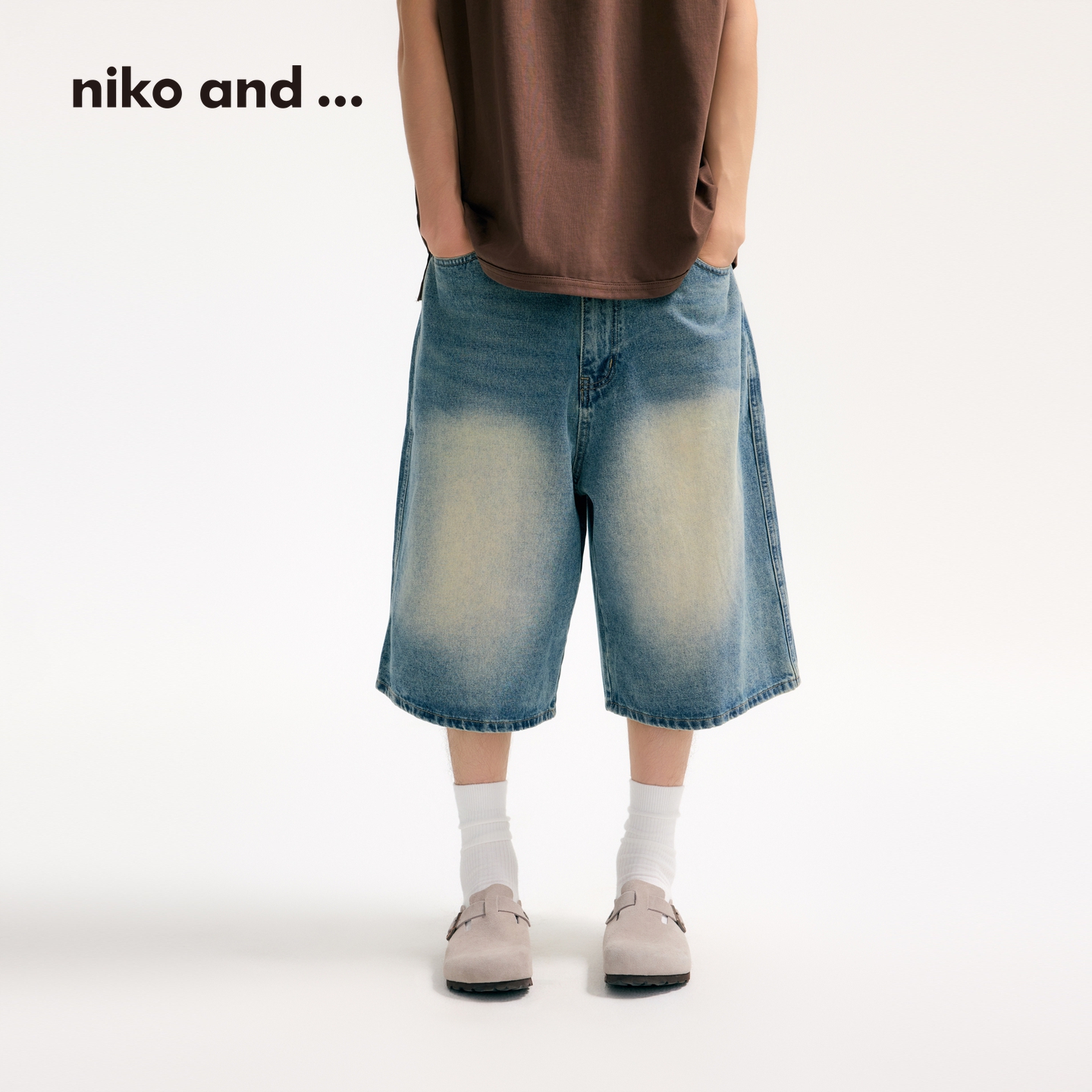 niko and ...短裤男2025夏季新款含棉简约水洗牛仔中裤582422