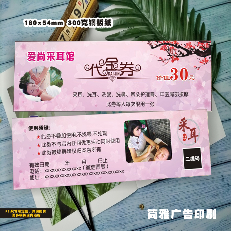 美容养生会所足浴艾灸推拿耳疗体验卡定做足疗洗浴中心体验卡制作