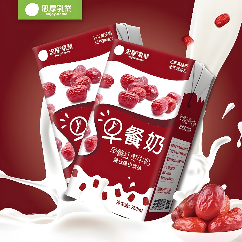 忠厚红枣早餐奶250mL*24盒营养健康学生老人牛奶饮品整箱礼盒装