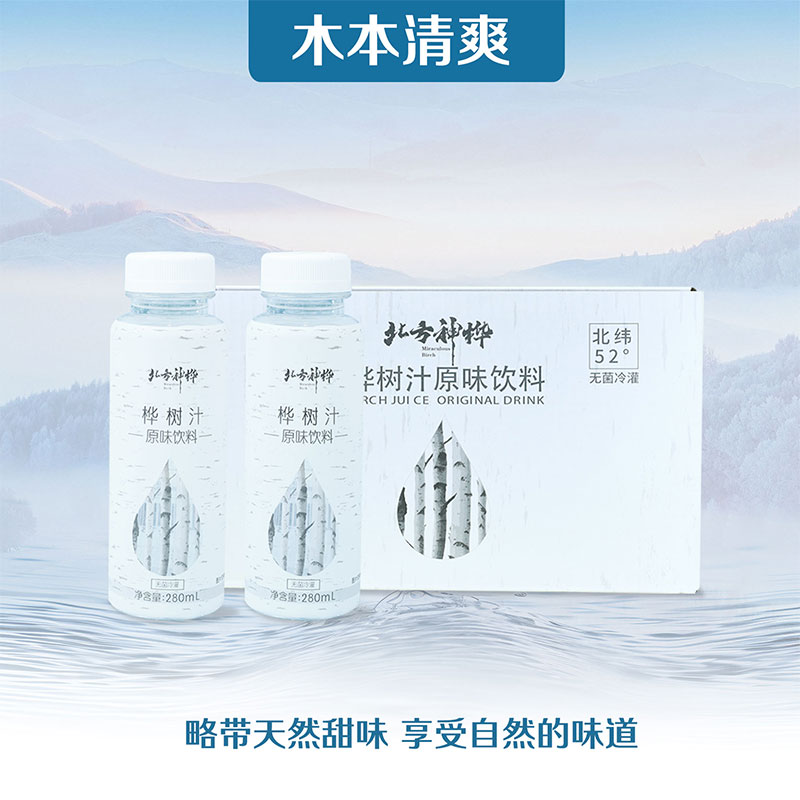 北方神桦白桦树汁饮料原味0蔗糖饮品天然健康植物饮料280ml原汁