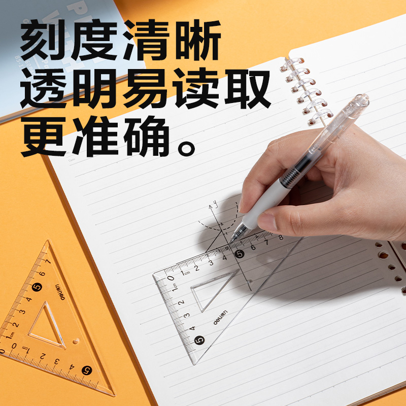 得力三角尺两件套装学生尺子使用工程制图三角板美术专业塑料透明
