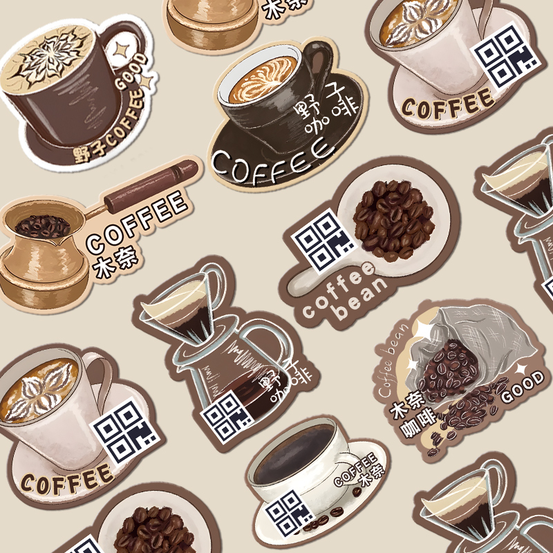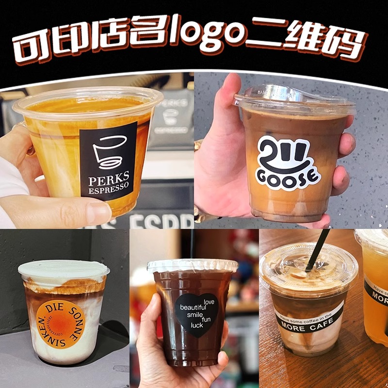 咖啡杯贴纸定制奶茶店一次性防水logo标签冷饮料二维码异形贴画设计冰美式外卖封口贴拿铁创意自粘不干胶订做