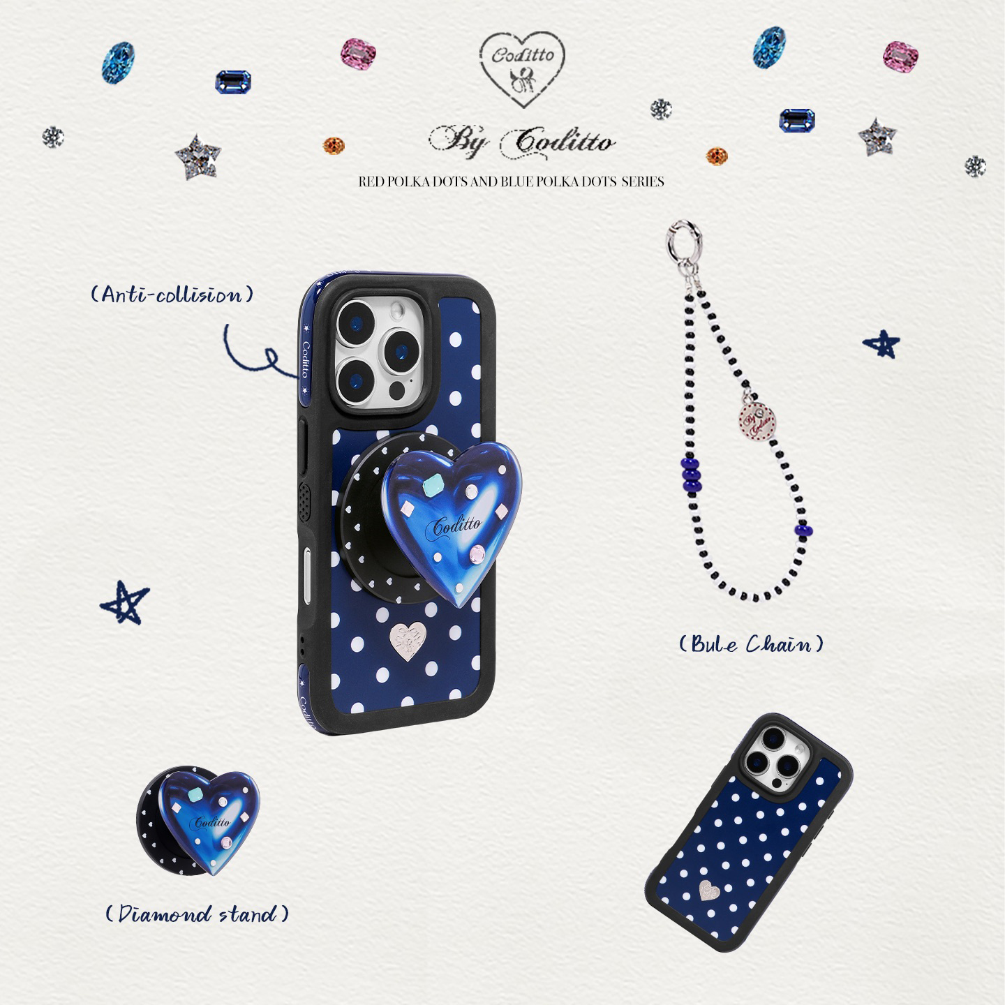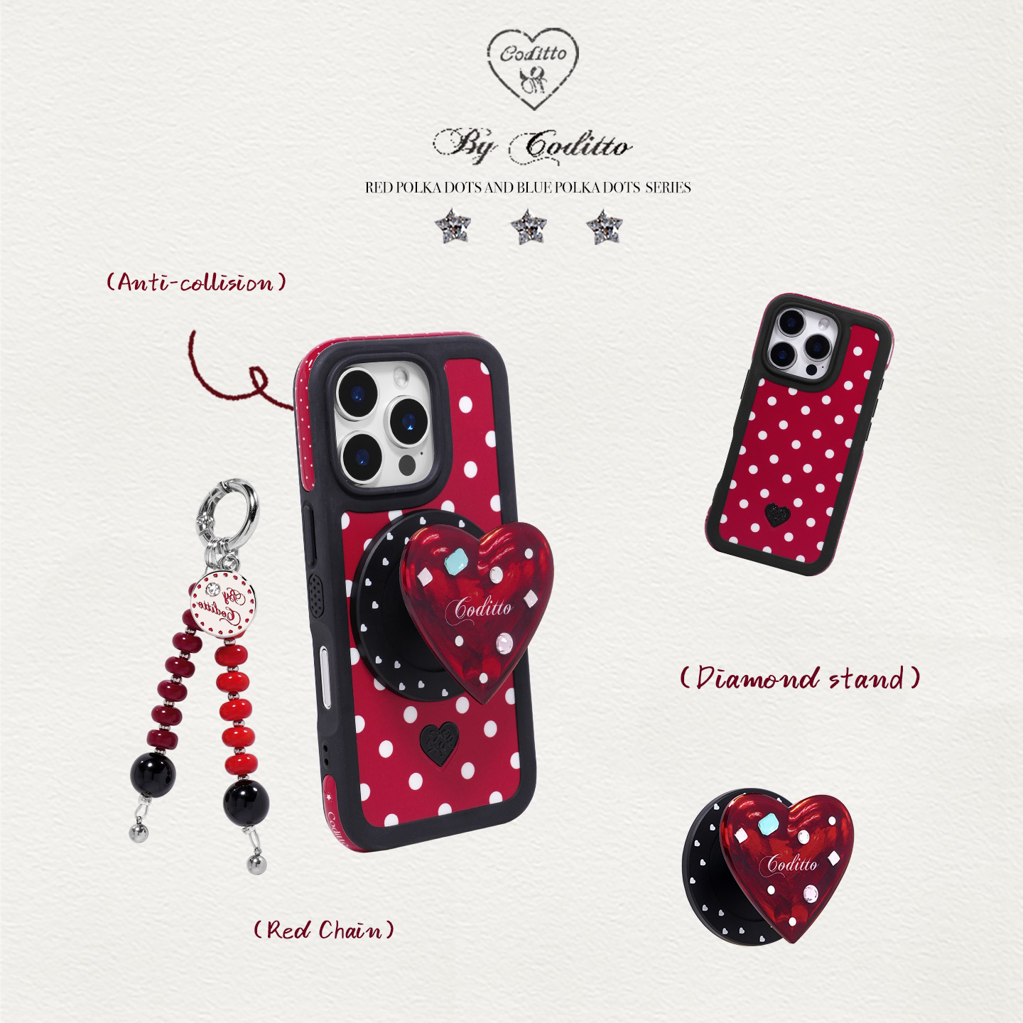 coditto原创设计红蓝钻石爱心磁吸支架新款懒人手机磁吸支架