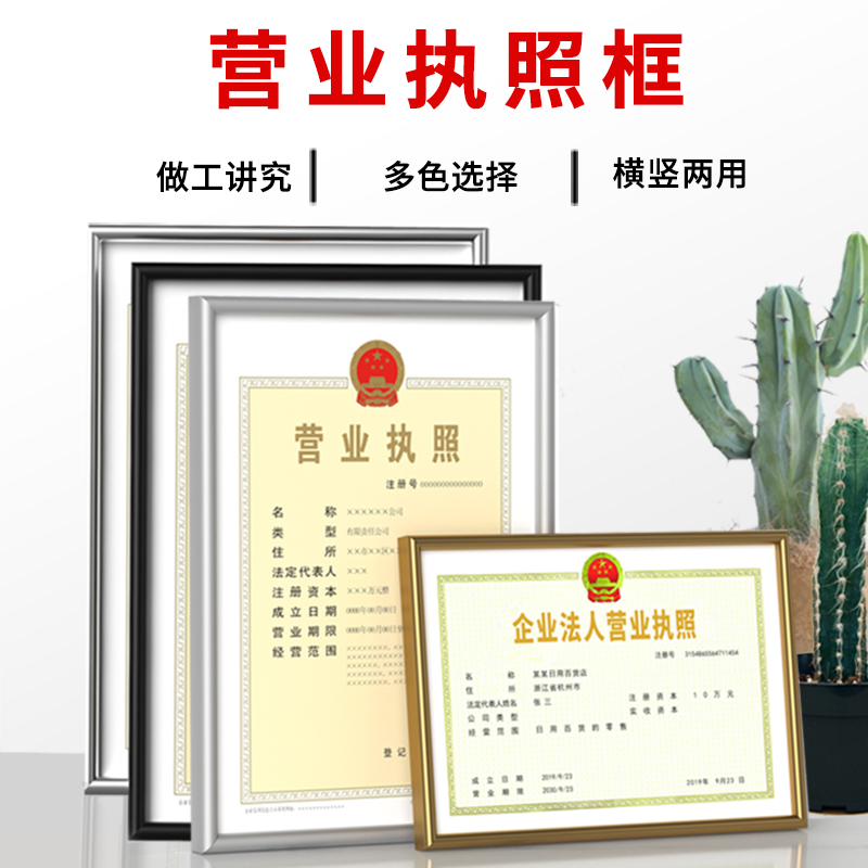 铝合金工商营业执照框架税务a3正本专利卫生许可证保护套相框挂墙