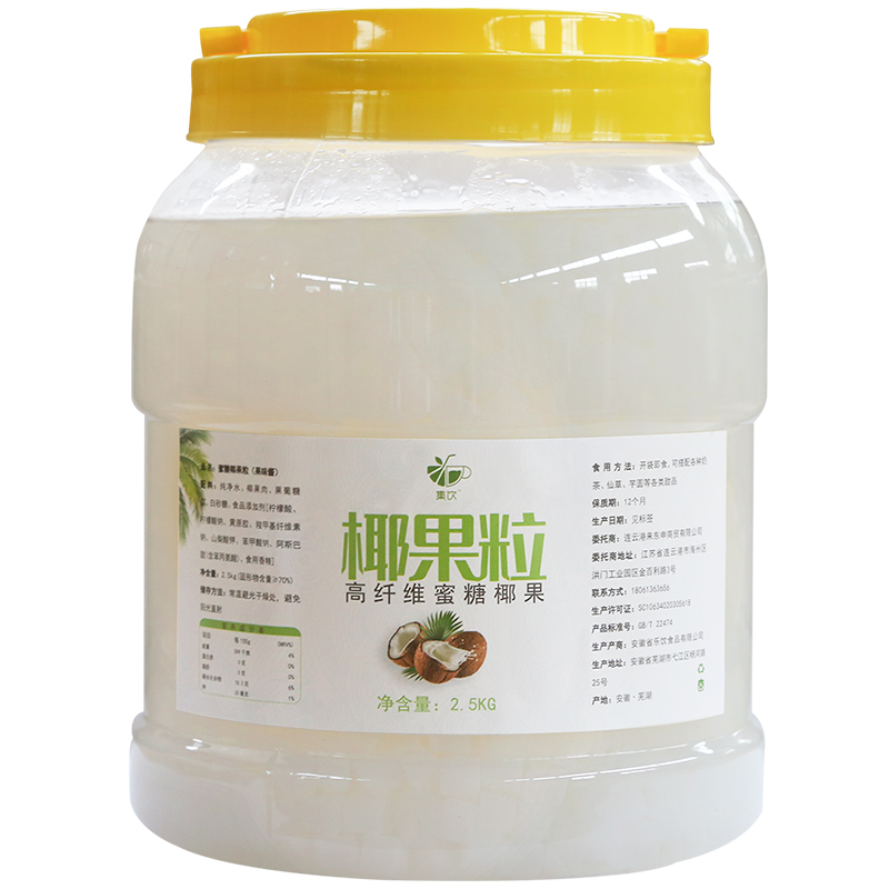 集饮原味椰果粒奶茶店专用原材料水果捞刨冰粉配料长条椰肉桶装袋