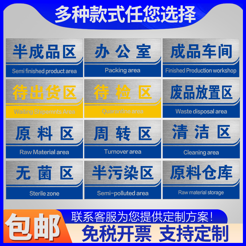 车间区域标识牌铝板现货 清洁工具放置区 半成品来料检验区原材料仓库包装区退货装配 标志牌定 包装区可定制