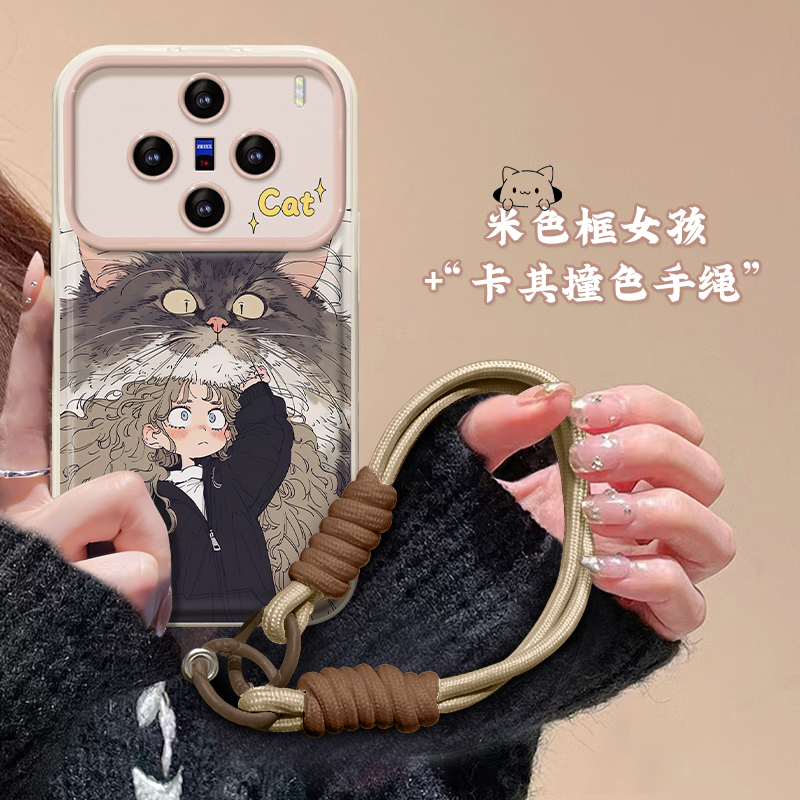 适用于vivox100手机壳新女款x90/80pro全包防摔s17大视窗s16e翻盖镜子s15/12猫与女孩挂绳x70/60软硅胶保护套