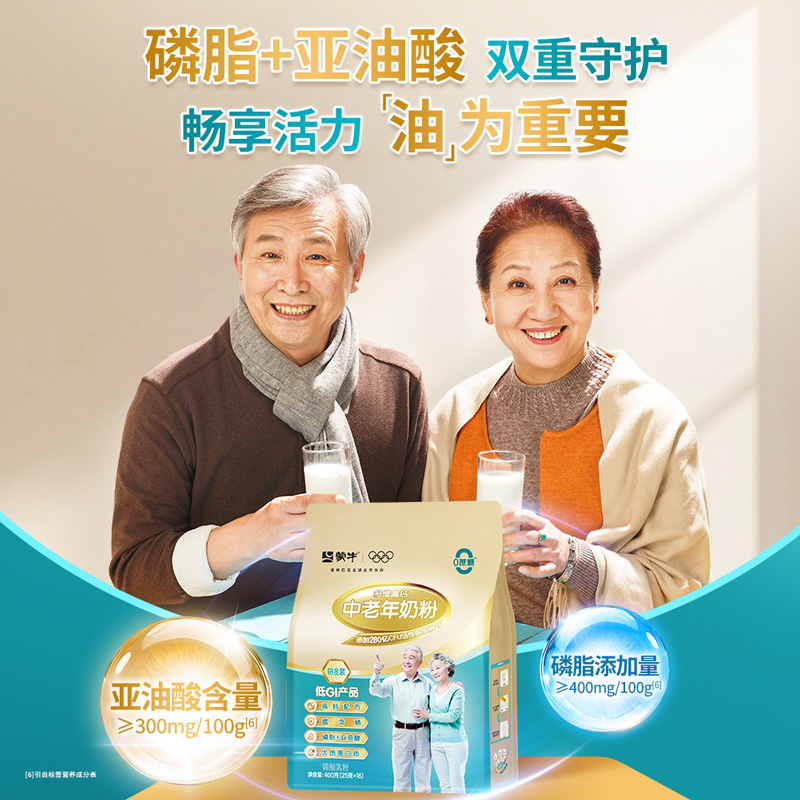 蒙牛铂金装中老年人多维高钙奶粉400g袋装营养送礼长辈配方蔗糖