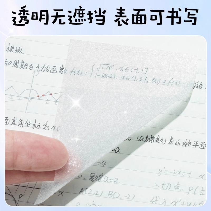 晨光透明磨砂便利贴珠光色可重复粘贴笔记标签贴中性笔专用便条纸学生笔记重点不遮挡N次贴笔记神器每本50张
