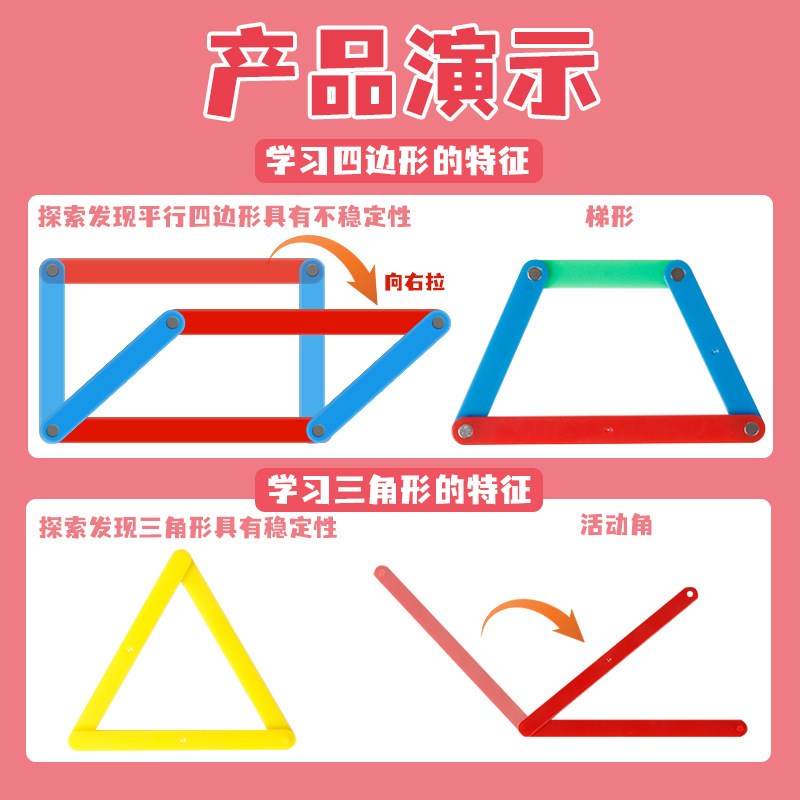 速发平行四边形活动框架教具大号磁性条套装小学生数学学具图形活