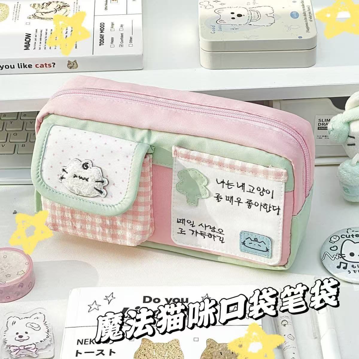 猫咪魔法口袋笔袋ins高颜值可爱少女文具袋多功能学生铅笔袋收纳