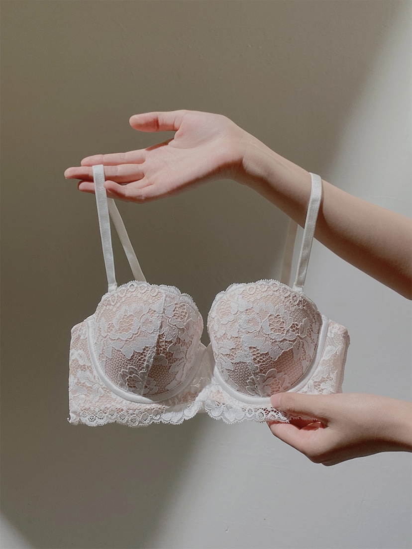 川奈酱 内衣女小胸聚拢收副乳调整型法式有钢圈文胸纯欲蕾丝胸罩