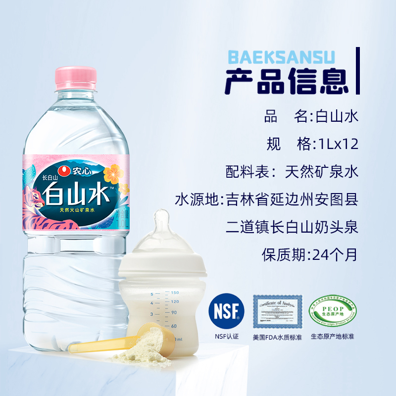 农心白山水天然火山矿泉水1L*12瓶整箱适合婴幼儿宝宝水包邮低钠