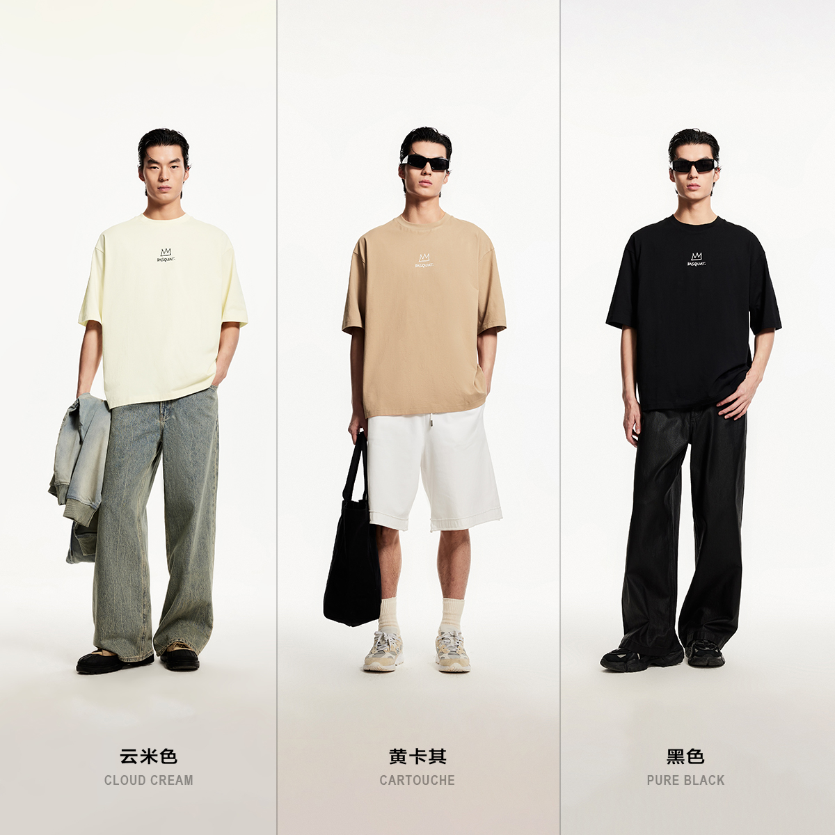 NX真维斯潮牌男装2025夏季新款男女同款短袖纯色纯棉圆领半袖T恤D