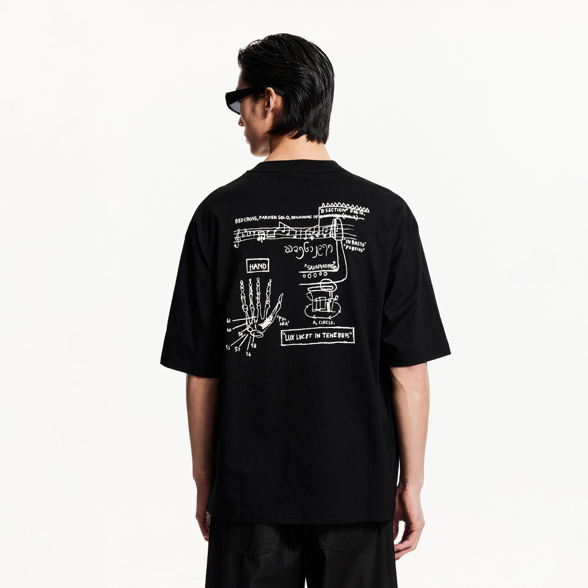 杰克琼斯潮流廓形宽松罗纹圆领胸前图案男士短袖男款T恤上衣男装