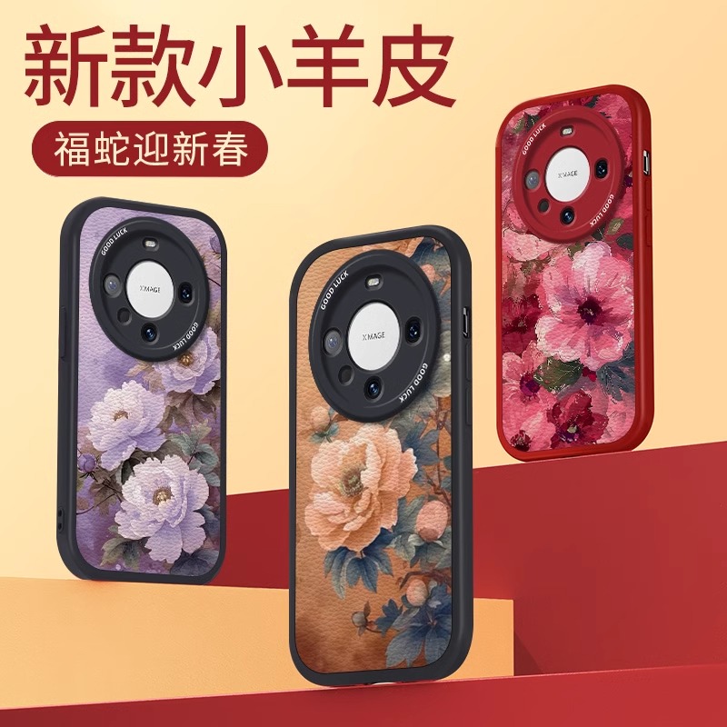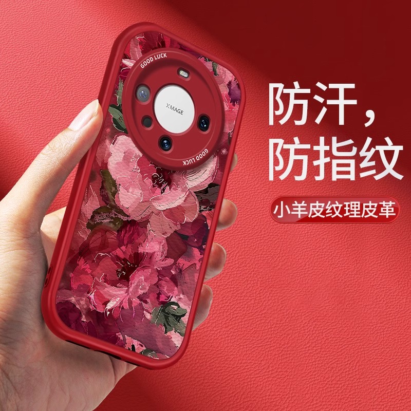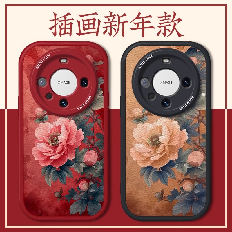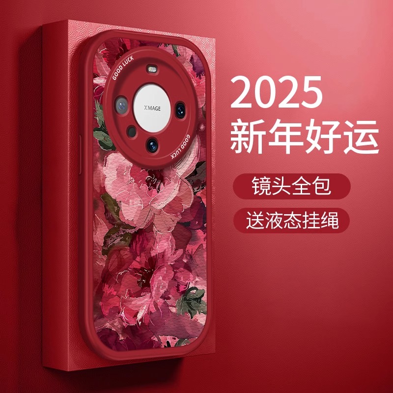 绽放红牡丹适用华为mate80手机壳70新春款mate60创意魅特50rs红色MATE40高级女40ePro全包保时捷设计防摔套
