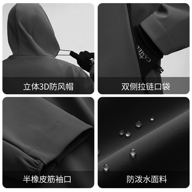 骆驼软壳冲锋衣男装2025秋冬新款户外运动服外套防风夹克休闲风衣