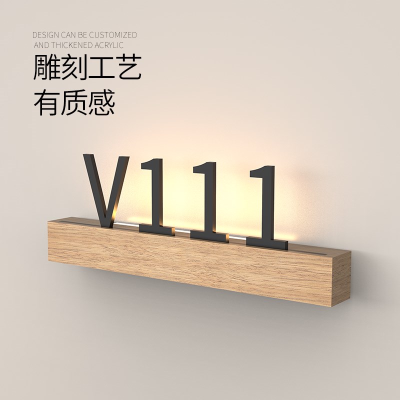 轻奢创意酒店LED发光门牌号定制饭厅棋牌室KTV包厢房间标识牌