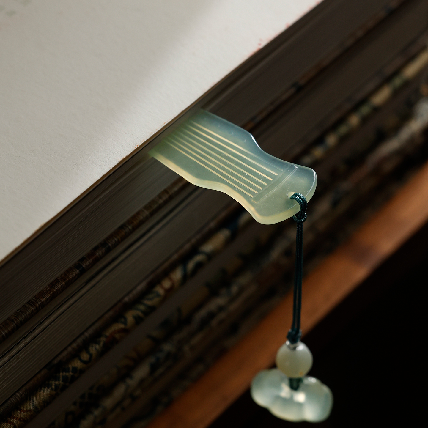 岫玉古琴书签 多功能书法玉石摆件 美观初学者毛笔礼品文房书法